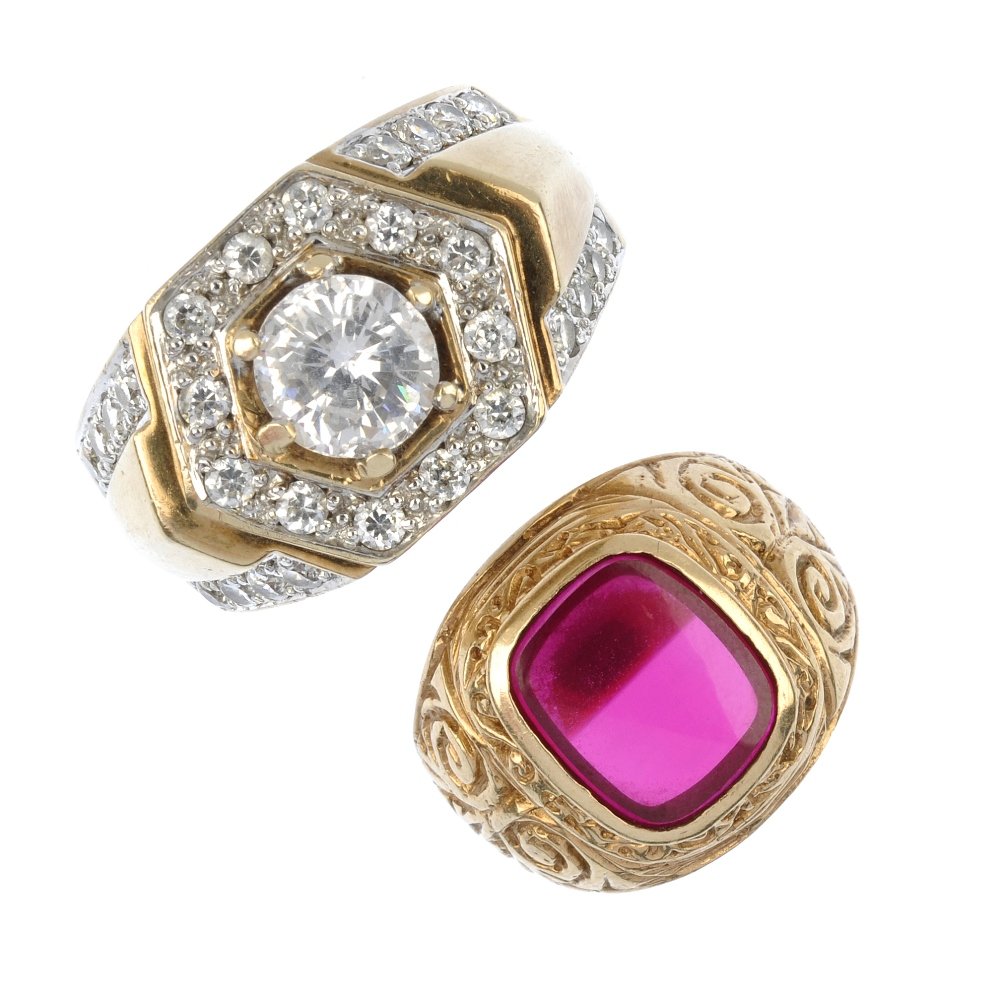 (11471) Two 9ct gold stone-set rings.
