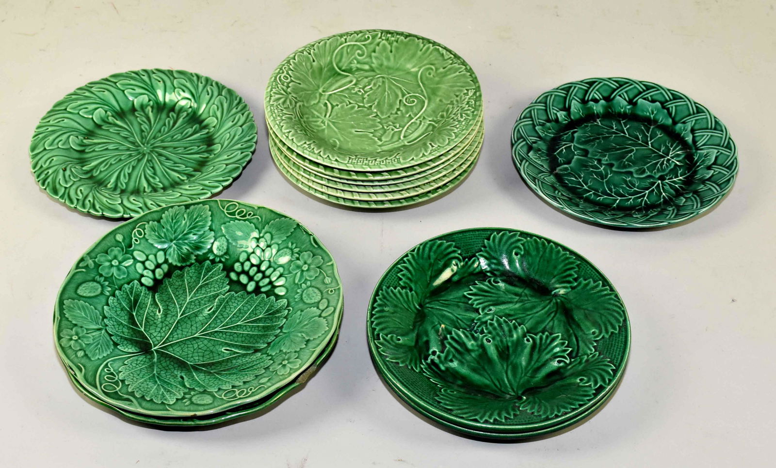 (12) ASST. MAJOLICA PLATES. Largest: 9'' diameter.