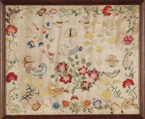 12: CREWEL WORK PANEL Probably Connecticut, late 18th c