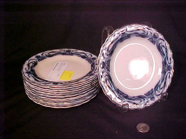 12 FLOW BLUE MYOTT IRIS PORCELAIN PLATES