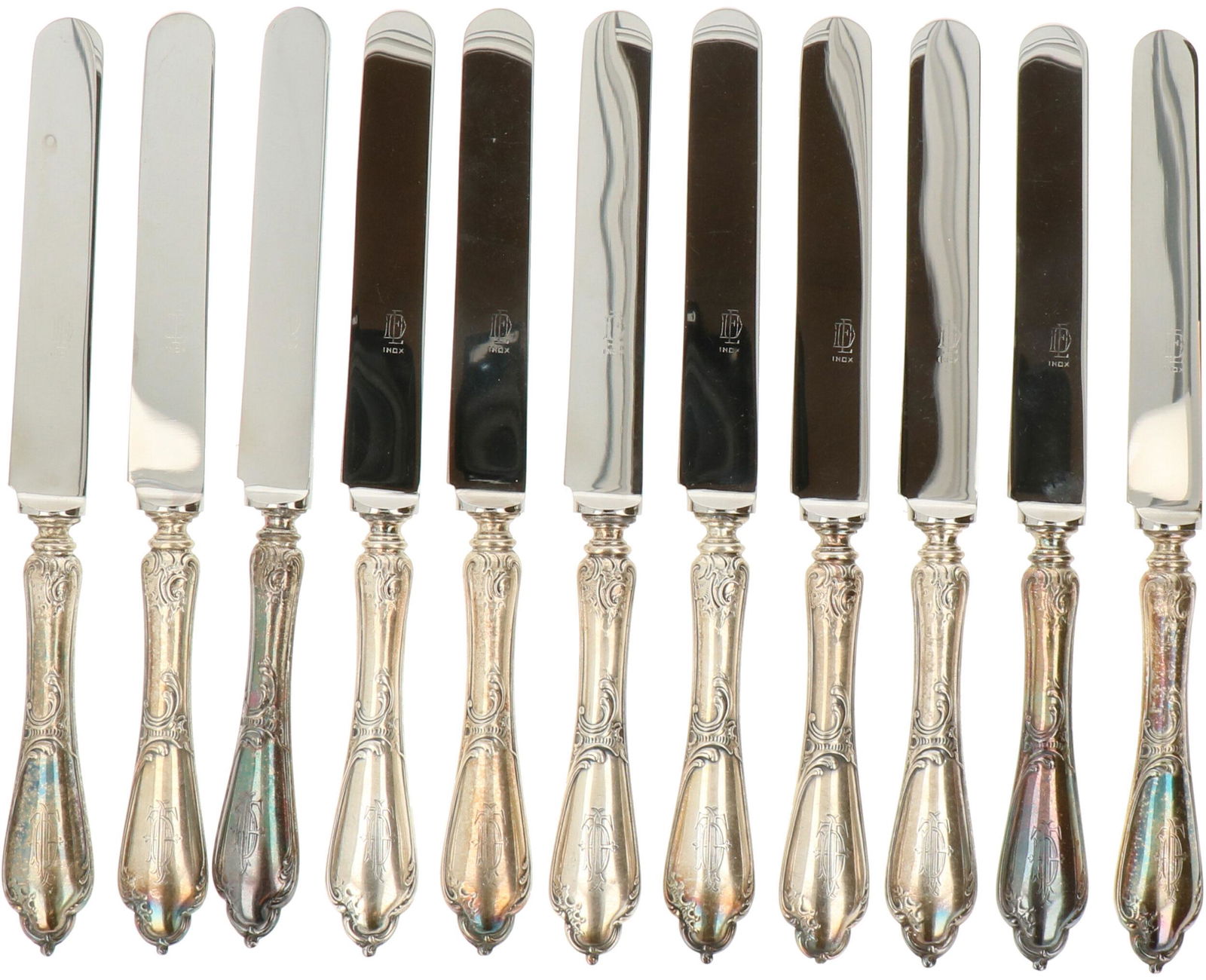 12PC LOT OF STERLING HANDLE FLATWARE, 6 T.O.W.Mar 07, 2026A Large Lot of Silverplated Knives4 days Left7 Vintage Eternally Yours Stainless Steel KnivesMar 04, 2026A Collection of 12 Wallace Grande Baroque Sterling Handle Knives5 days LeftTowle Old Colonial Sterling Silver Fish Knife Set 12 pcs4 days LeftWallace Grande Baroque Sterling Silver Steak Knife Set 8pcFeb 22, 2026Josef Reiner 12pc .800 Silver Knife Set with Silverplate Blades 8 1/4"Feb 24, 2026(7) Dominick and Haff Mazarin Sterling Handled Steak KnivesFeb 24, 2026Set of Six Antique Sterling Harrison Bros George V Hanoverian Knives(12) Dominick and Haff Mazarin Sterling Handled KnivesFeb 24, 20261880 Pairpoint Silver Plate Flatware Set- 10 PiecesReed & Barton Eighteenth Century Sterling Silver Steak Knife Set 8pcFeb 27, 2026(6) Dominick and Haff Mazarin Sterling Handled Knives W/Traditional BladesFeb 24, 2026Reed & Barton French Renaissance Sterling Silver Steak Knife Set 12 pcs 8 1/2"Feb 21, 20268 Landers Frary & Clark Knives5 mins Left(24pc) Antique Imperial Russian Silver Cutlery Set7 days Left