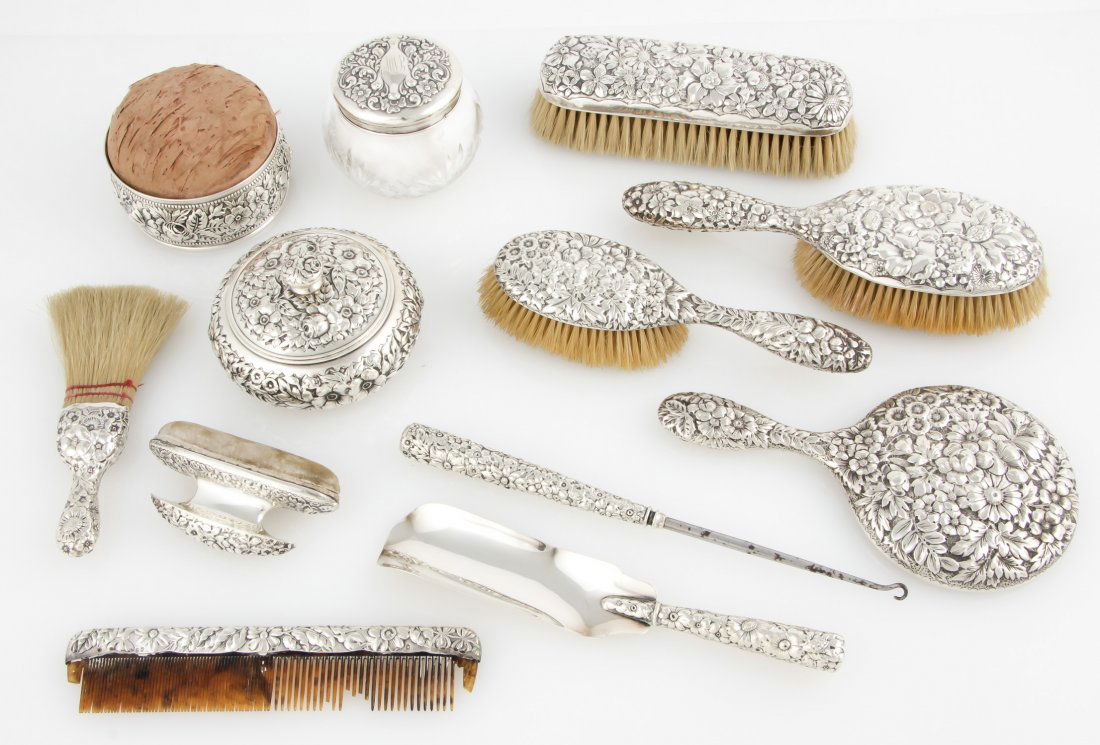 12 pc Sterling Silver Repousse Vanity Suite