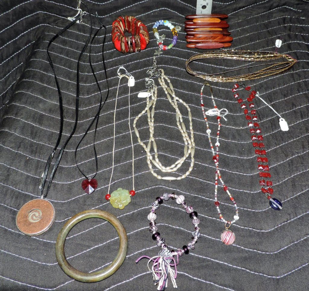 SoldAssorted Costume Jewelry Bracelets Necklaces Earrings Pendants Rings Handcrafted Pieces Lot #12Assorted Costume Jewelry Bracelets Necklaces Earrings Pendants Rings Handcrafted Pieces Lot #12. Over three (3) pounds of jewelry bracelets, earrings, necklaces, and pendant pieces. This set includesSee Sold Price