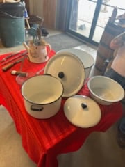 (46) pcs. Estate WEDGWOOD dishes, from local estate, nice overall condition, good lot to sort2 days LeftEstate misc. lot to incl. dishes, stoneware, country bowls, silver overlay bowl, etc. Just as we2 days LeftMixed Lot4 days LeftLot of 16 KitchenwareFeb 15, 2026Lot of 20 Baking-Cooking PansFeb 15, 2026(6) LARGE COPPER & BRASS KITCHENWARE POTSFeb 21, 2026Pressure Cooker, Donut Maker, Coffee Grinder(5) COPPER & CERAMIC COOKWARE, SWISS SAUCEPANS & BAIN-MARIE BOILERFeb 20, 2026Vintage Assorted Tea Cups Saucers And Toothbrush Holder6 days LeftLe Creuset Cast Iron Oval Dutch Oven & Skillet Set Red Enamel Orange Base6 days LeftCopper Cookware-Chafing Dish, Mixing Bowl, Skillets, Pot, etc.The Pampered Chef Candy Thermometer, Chopper, Strainers, Ground Meat MasherVarious pots/pans/corningware tray(11.5in.x14in.)2 hrs LeftKitchenAid Pasta Maker Attachment, Stainless Mixing Bowl, Dough Hook, Paddle and Whisk AttachmentsTray 6 Chinese Tea Pots + 2 Covered Mugs3 days Left15pcs Chinese Export Porcelain Tea set with Tea Bowls.Feb 12, 2026