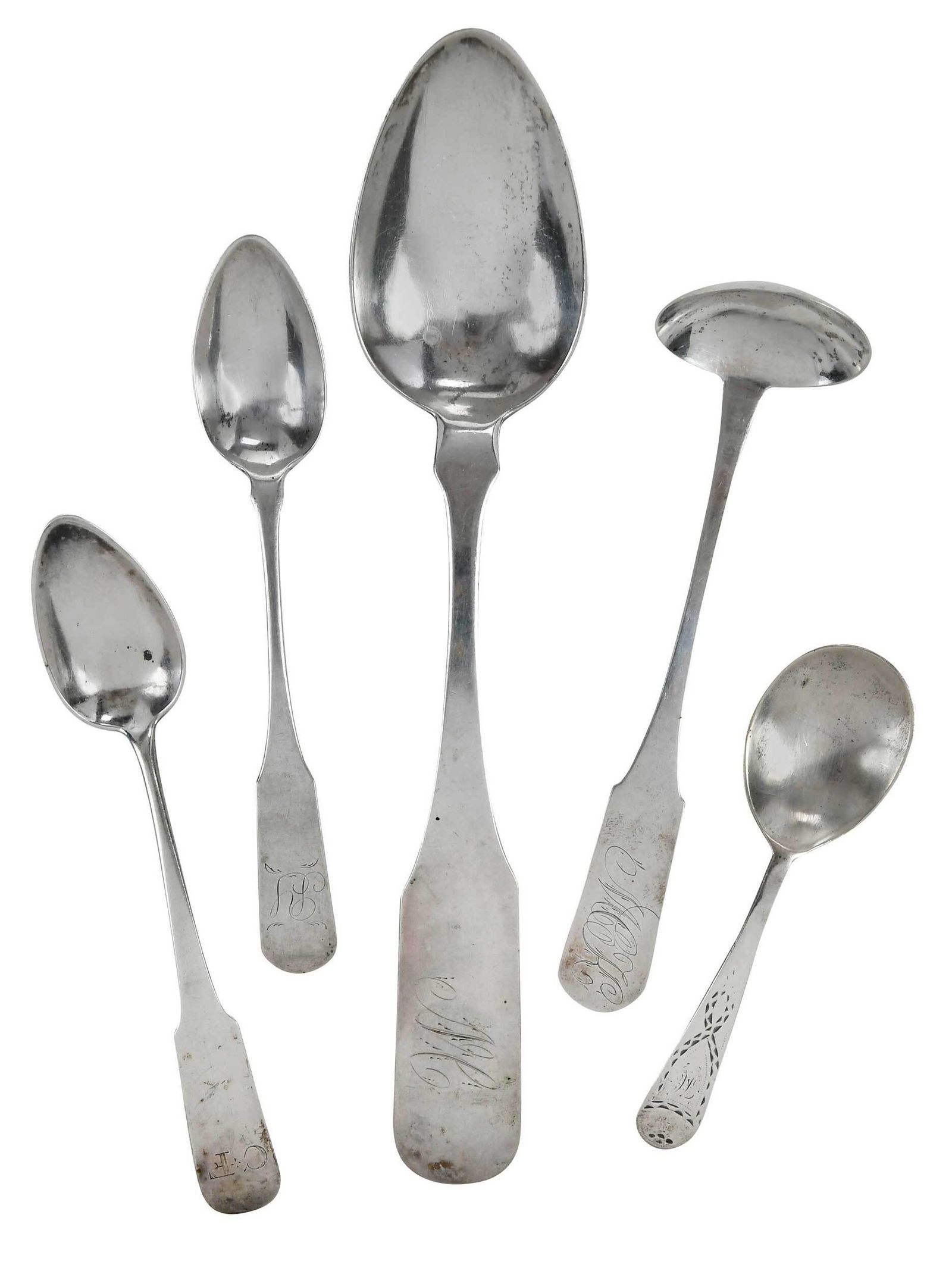 Lashar Silver Co Silverplate Teaspoon Lot of 45 days LeftMixed Vintage Silverplate Flatware Lot Community Plate NCO Victor5 days LeftLot of (10) American Coin Silver SpoonsApr 24, 2026(6) TIFFANY & CO. 'ANTIQUE IVY' STERLING SILVER PLACE SPOONSMar 29, 2026(12) STERLING SILVER FLATWARE & STRAINER, TIFFANY & CO., GORHAM & MOREMar 29, 20265 PIECES ENGLISH FLATWARE5 days Left19th C American Coin Silver Serving Spoons (14pc)Mar 28, 2026Set of Six Hyde and Goodrich Coin Silver Tablespoons, New Orleans, mid 19th c., Total App. Wt.-Mar 27, 2026J. E. Caldwell, Hamilton & Davis Coin Silver Flatware2 days Left23 pcs. Early American Coin and Sterling Flatware3 days LeftSet Of Four Caleb Warner American Coin Silver Fiddleback Teaspoons, 19th C.Mar 28, 20267 pcs. Mid 19th c. Coin Silver "Olive" Flatware3 days LeftEarly American Coin Silver "Fiddle Back" Flatware and Extras (15)Mar 28, 2026Twenty-Five Pieces of British Sterling Flatware, 18th/19th/20th c., App. Total Sterling Wt.- 18.83Mar 27, 202622 Early American Coin Silver Teaspoons3 days LeftA Group of English and American Coin Silver Spoons and English Sterling Spoons3 days Left