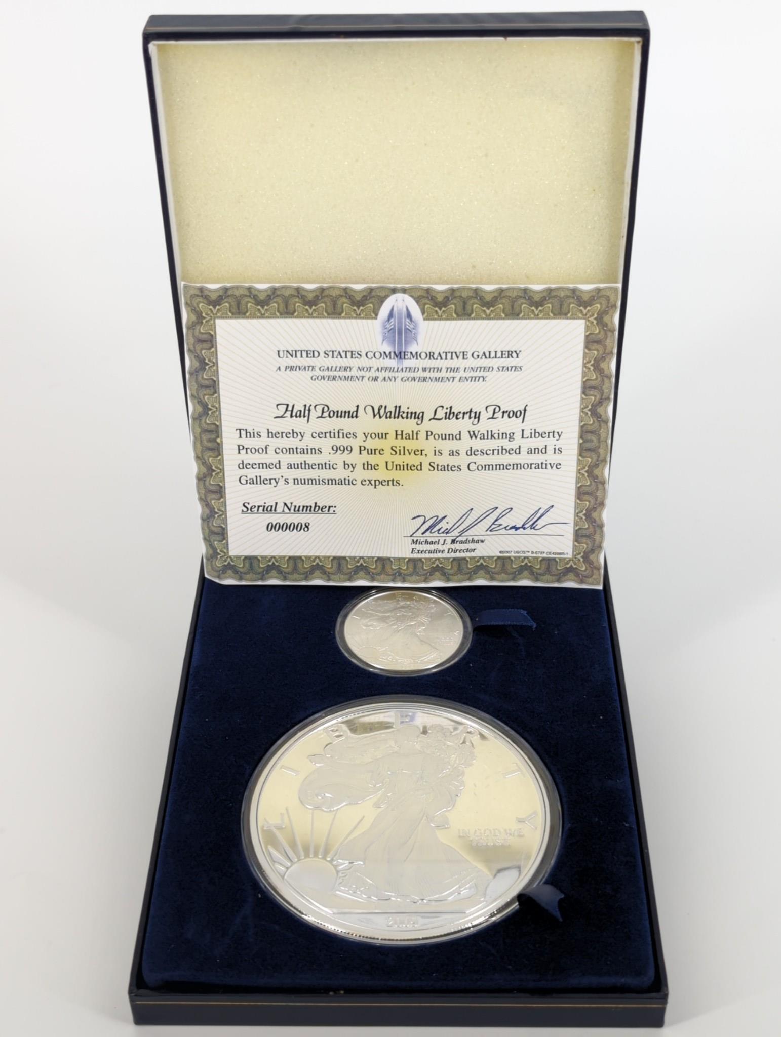 1/2 Pound Silver Proof Round + U.S. Silver Eagle Dollar Coin in Box