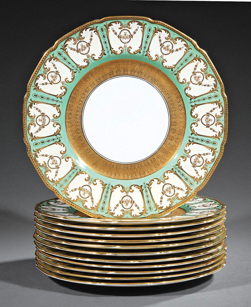 Lot of 9 Cauldon Gilded Porcelain Serving Plates2 days Left11 Royal Doulton England Gilt Porcelain Dinner Plates circa 191013 hrs Left12 Royal Worcester England 9.4 inch Dinner Plates 1927Mar 15, 20268 Royal Doulton England Porcelain Green and Gilt Dessert Plates circa 1910Mar 15, 20266 Royal Doulton England Gilt Porcelain Dinner Plates circa 1914Mar 15, 2026Twelve Haviland-Limoges Porcelain Plates Diameter 10 1/8 inches.Feb 01, 2026Set of Eight Limoges Porcelain Gilt Decorated Plates2 days LeftRoyal Crown Derby Porcelain Dinner Plates, 15Mar 12, 2026Set of Nine Limoges Porcelain Dinner Plates2 days Left8 Minton England Gilt Porcelain Dinner Plates H5017 circa 1957Mar 15, 20268 Royal Worcester Porcelain Empire Style Dessert PlatesMar 15, 202612 Edgerton Porcelain Dinner Plates Gilt and Floral Bouquets circa 1940Mar 15, 2026Set of Ten Royal Crown Derby Porcelain Plates2 days Left8 Cauldon England Gilt Porcelain Dinner Plates Greek Key c190013 hrs LeftSet of 12 Antique Royal Worcester Plates by Hardy & Hayes C1910Feb 28, 202610 Cauldon England Porcelain and Gilt Scallop Rimmed Dinner Plates late 19th C13 hrs Left