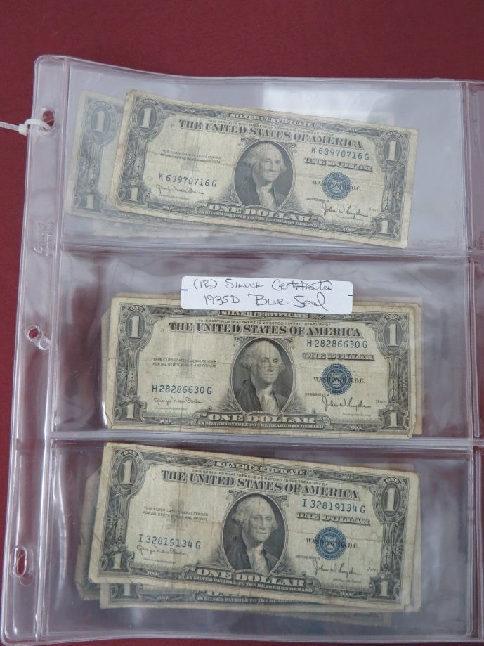 5 US $1 silver certificates, & lot of foreign currency13 hrs LeftLot of 2 $1.00 Blue Seal Note6 days LeftLot of 2 - 1957 $1 Notes - Silver CertificatesLot of 6 - 1957/1957 A/B $1 Notes - Silver CertificatesLot of 2 - 1935 D/F $1 Notes - Silver CertificatesUS 1957-1957B $1 Silver Certificates, Blue SealUS 1935 E $1 Silver Certificates, FR-1614US 1928-1957 $1 Silver Certificates, Paper, Fr. 1600-1619US 1935-1957 $1 Silver Certificates, Paper, Fr. 1608, 1614, 1620US 1957 $1 Silver Certificates, Pick-1619US 1935 Series $1 Silver Certificates, A Group of 4 BanknotesUS 1934 C and 1934 D $5 Silver Certificates, Paper, Fr. 1653 and 1654Series of 1953-A and 1953-B Ten Dollar silver Certificates10x 1957 $1 Blue Seal Silver Certificates Grades CU713 Lots Away10x 1957 $1 Blue Seal Silver Certificates Grades CU23 hrs LeftUS 1935-1957 $1 Silver Certificates, Paper, A Collection of Banknotes