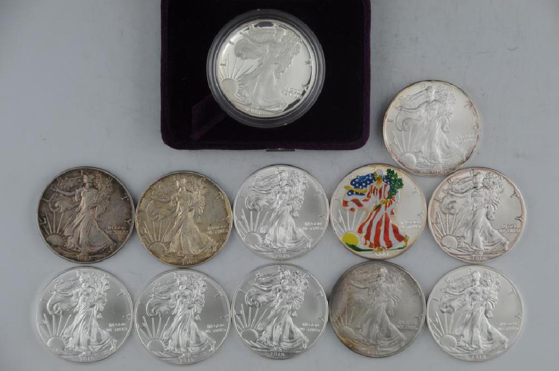 LOT (7) SILVER EAGLE/ROUNDS, C. 1990'S, 1 OZ. EACH1 day LeftLot Of 14 Mixed Date United States Silver American Eagle 1 Ounce .999 Fine Silver DollarsFeb 27, 20266 Fine Silver Eagle Coins 6 ozT .9993 days LeftFour (4) .999 Silver American Silver EaglesFeb 28, 202621 Key Date 1996 American Silver EaglesMar 10, 20261996 and 1989 GEM BU American Silver EaglesEleven US Silver Eagle $1 Coins, 1996-2006, MS69Mar 13, 2026Eleven US Silver Eagle $1 Coins, 1986-1995, MS69Mar 13, 2026ASSORTED 1999-2003 FINE SILVER AMERICAN EAGLES(4)Mar 07, 2026(12) ASSORTED .999 SILVER ROUNDS & BARMar 05, 2026Bullion Group: American Gold and Silver EaglesMar 10, 2026American Silver Eagles and U.S. Silver Half DollarsMar 10, 2026(2) SILVER AMERICAN EAGLE DOLLARS3 days Left(2) SILVER AMERICAN EAGLE DOLLARS3 days Left12 American Silver Eagles, Assorted DatesMar 10, 20261992 S/W FINE SILVER AMERICAN EAGLES - (2)Mar 07, 2026