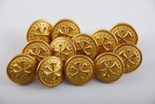 (12) "superior Quality" Brass Fire Dept. Buttons