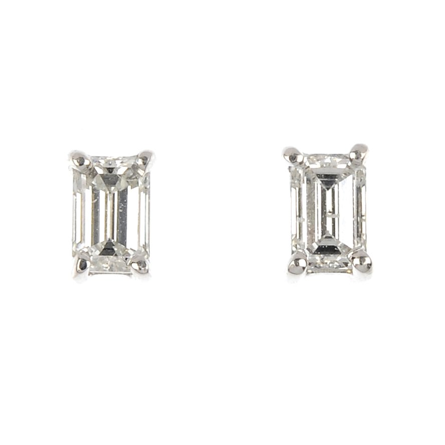 (122864) A pair of 18ct gold rectangular-shape diamond