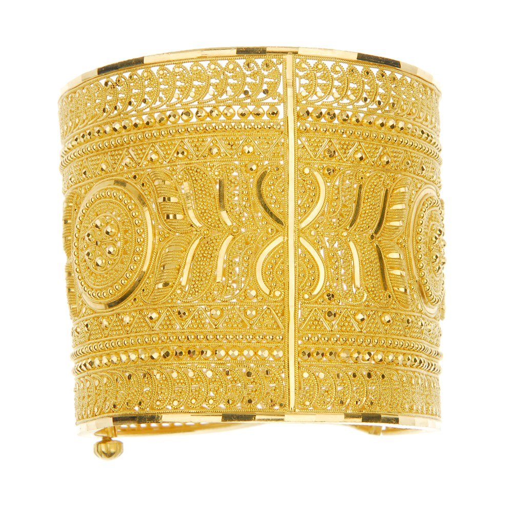(123289) A 22ct gold hinged cuff.