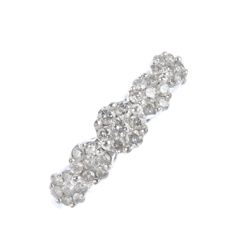 (123887) A 9ct gold diamond cluster ring. Designed as a