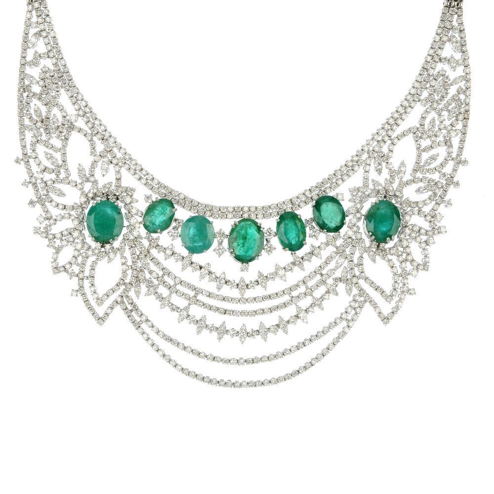 18K White Gold Ladies Necklace with 8.35ct Emeralds and 9.74ct tw Adjacent DiamondsRiverside Galleries4.5(198)$504 days Left