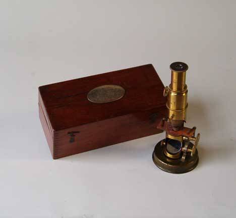 127: CIVIL WAR PRESENTATION BRASS MICROSCOPE AND CASE d
