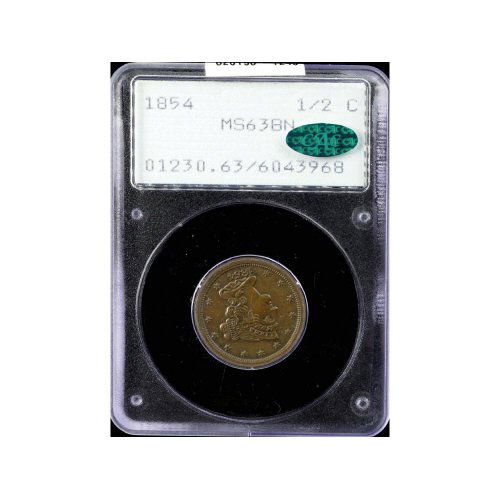 1/2C 1854 PCGS MS63 BN CAC Half Cent
