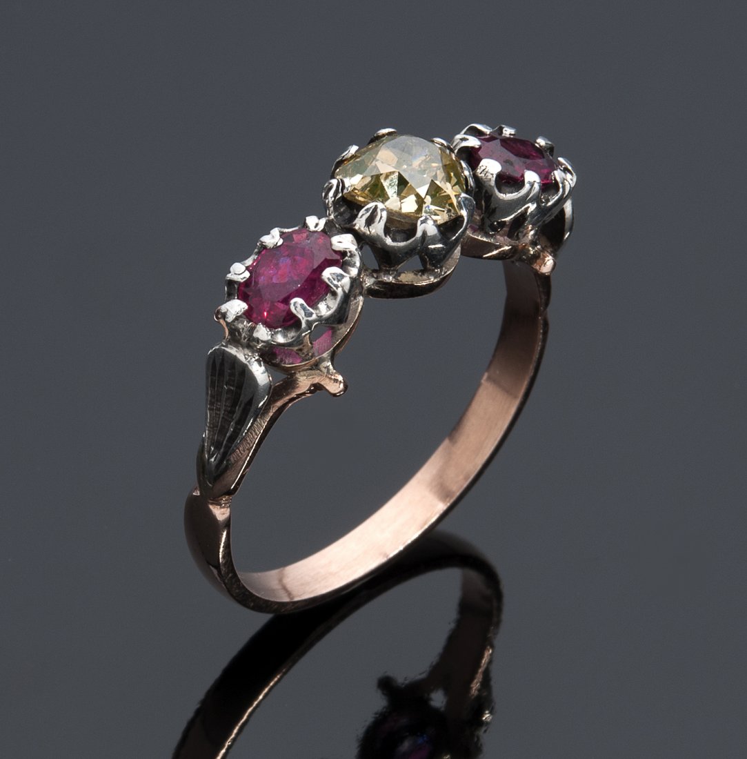 12K gold and silver diamon AND RUBY RING, early 20th
