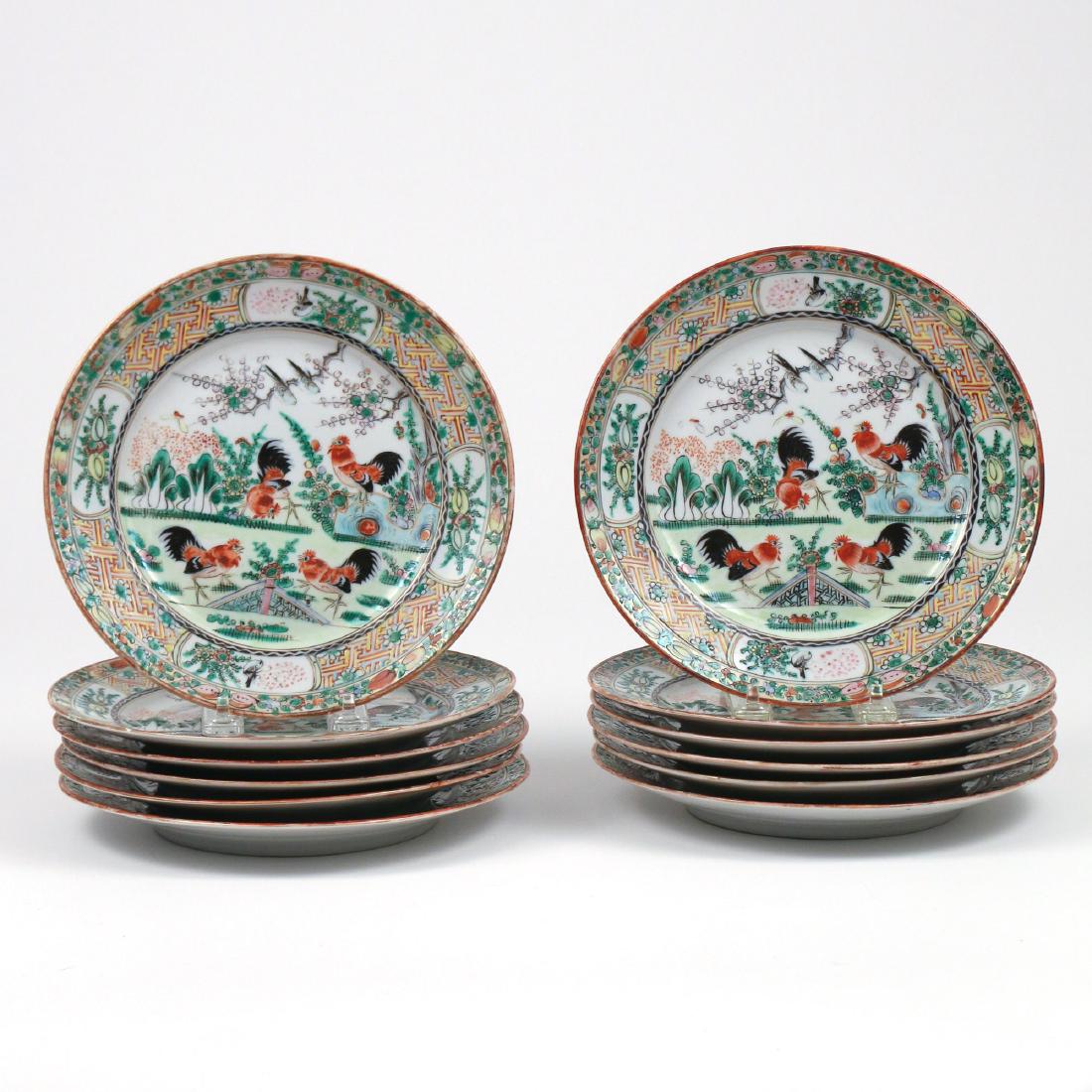 (12pc) CHINESE EXPORT ROOSTER PLATES