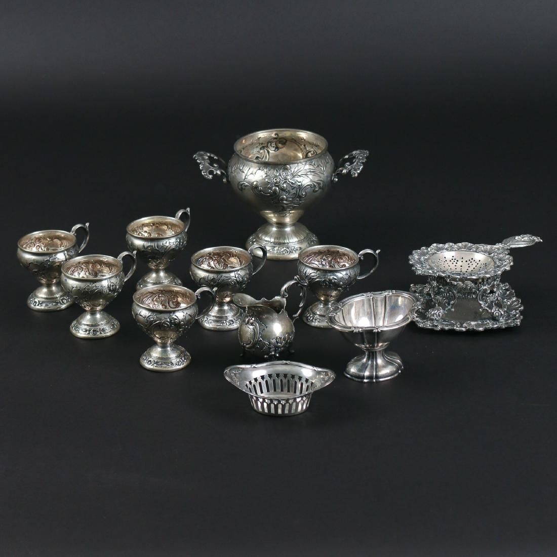 Lot of Assorted Silverplate - Gorham, etc.15 hrs LeftLOT ASSORTED STERLING & CORDIALS2 days LeftVintage Pewter Tableware Lot: John Somers, Wilton Columbia, Empire, KSMar 29, 2026Collection of Antique & Vintage Silver Plated Tea & Coffee Ware TeapotsSix Piece Tea Service, Solid Sterling Silver, Marked Dominick And Haff, Model #1072Apr 18, 2026Group of 12Pcs SilverwaresMar 31, 2026Group of Sterling Silver Tableware5 days LeftCollection of Sterling Hollowware6 days LeftSilver accessories, including a sugar caster, egg cup, jewelry box, and other items. 19th/20thApr 02, 202619/20th C Silver Plate Service & 925 Salt SpoonsMar 29, 2026An assembled five piece group of American sterling silver tableware, various makers, 20th centuryApr 01, 2026GROUP OF SIX SILVER HOLLOWARE ITEMS, 821gApr 02, 2026Collection of Silver & Sterling Objects6 days LeftA Collection of Silver Plated Hollowware6 days LeftGroup of Sterling Silver Tableware5 days LeftAmston | (5) Repoussé Sterling Holloware Tea & Coffee Service