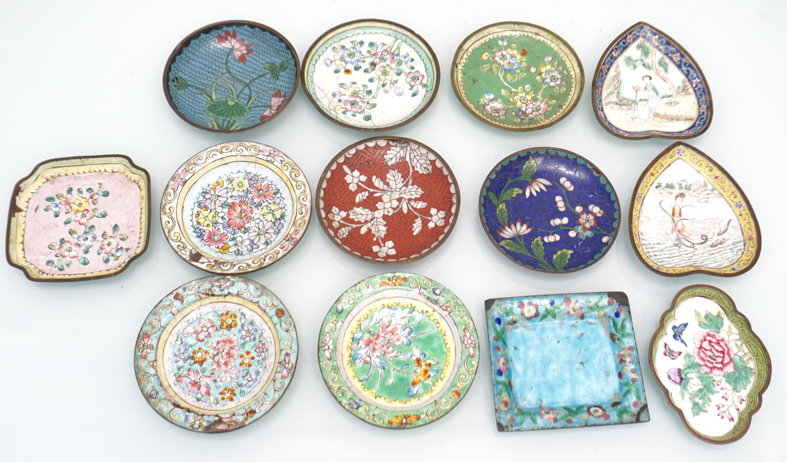 13 ANTIQUE CLOISONNE DISHES