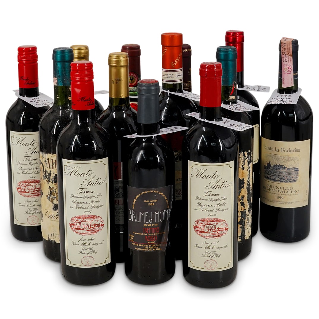(13 Pc) Assorted Italian Red Wine Bottles Collection