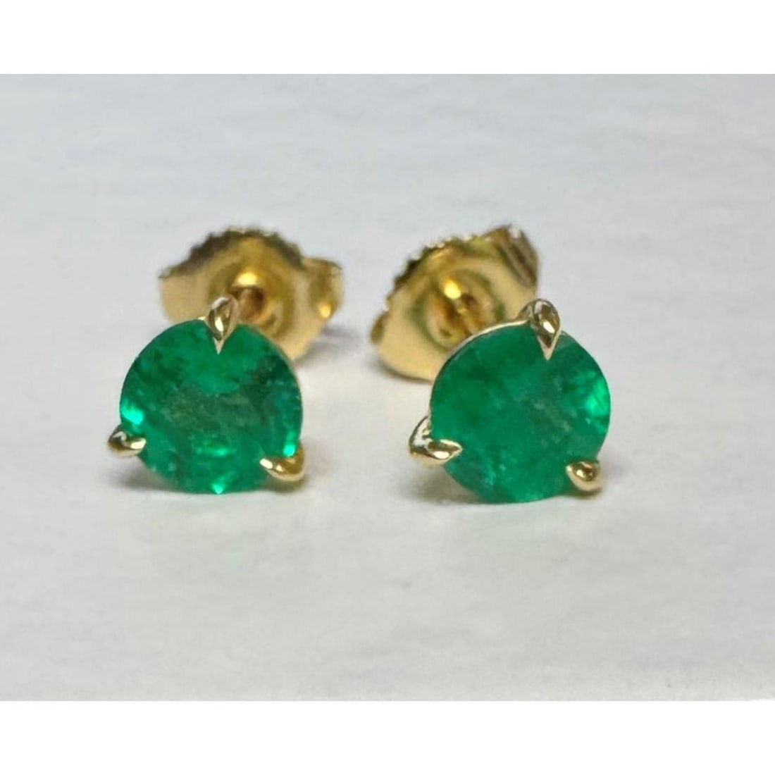 Sold14k Gold 0.28 Ct Natural Emerald EarringsRef:230927154 // gold content:14k gold // main gemstone:emerald // shape:round // carat weight:0. 28ct // color:green // treatment:natural // cut grade:g // Condition: New Low Estimate: 1800.00 HighSee Sold Price