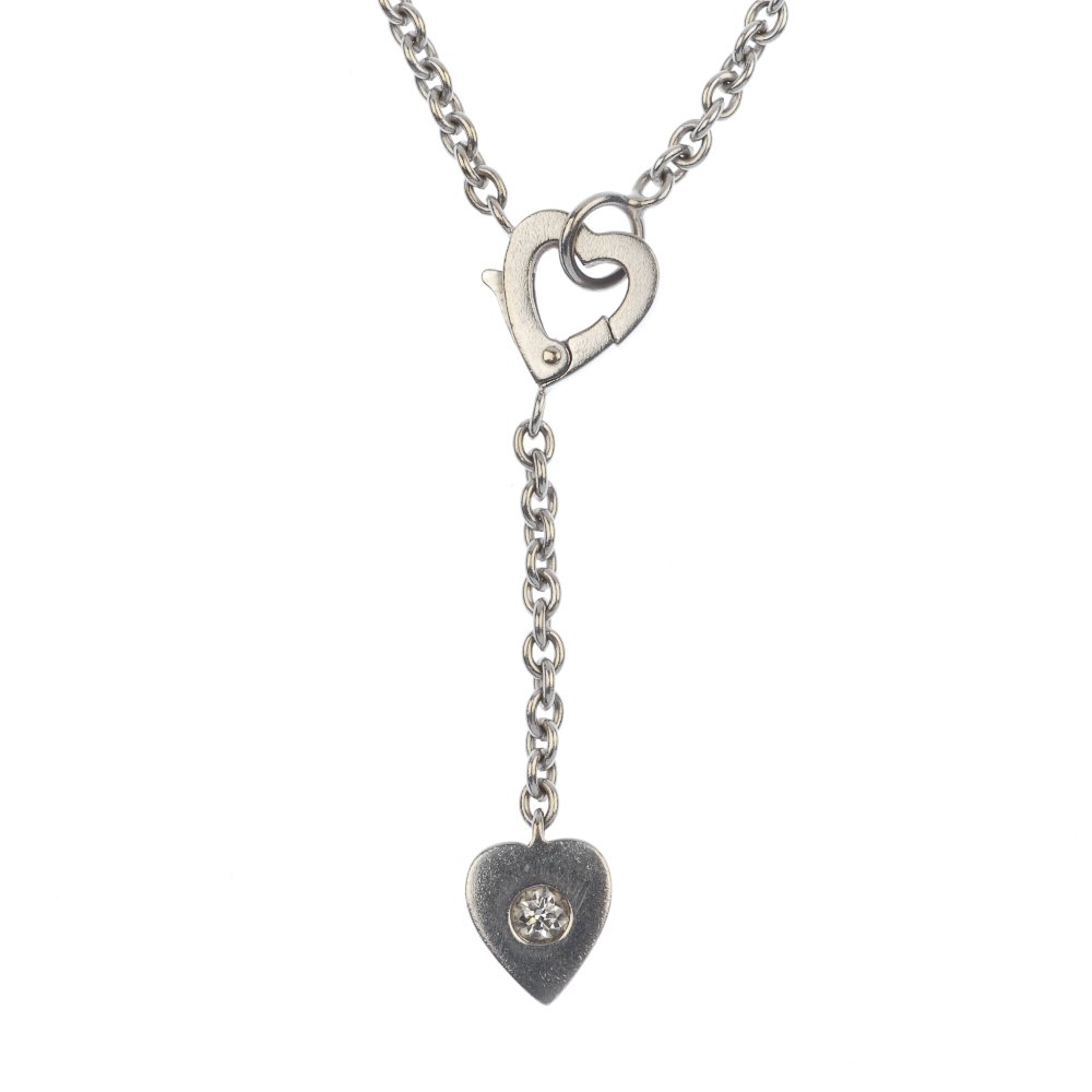 14K WHITE GOLD 0.10CT DIAMOND HEART PENDANT NECKLACE