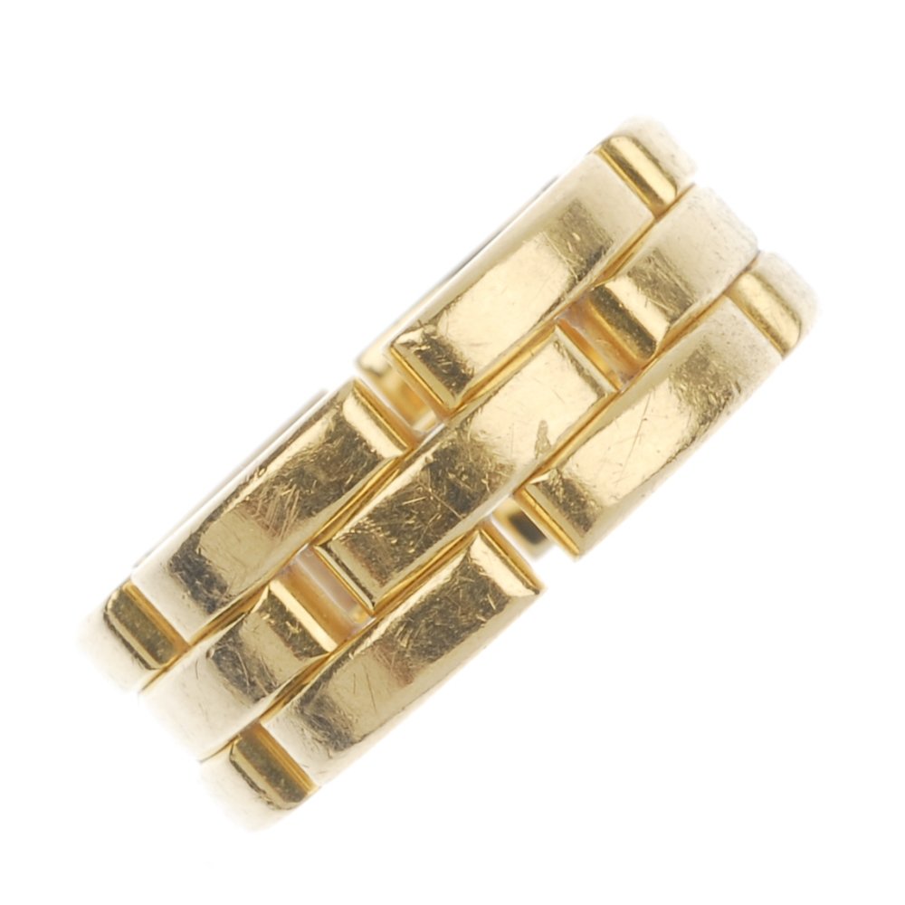SoldCARTIER, A MAILLON PANTHERE RING, CIRCA 1980S SignedCARTIER, A MAILLON PANTHERE RING, CIRCA 1980S Signed Cartier and numbered, no assay marks Size O / 7 17.7 gramsSee Sold Price