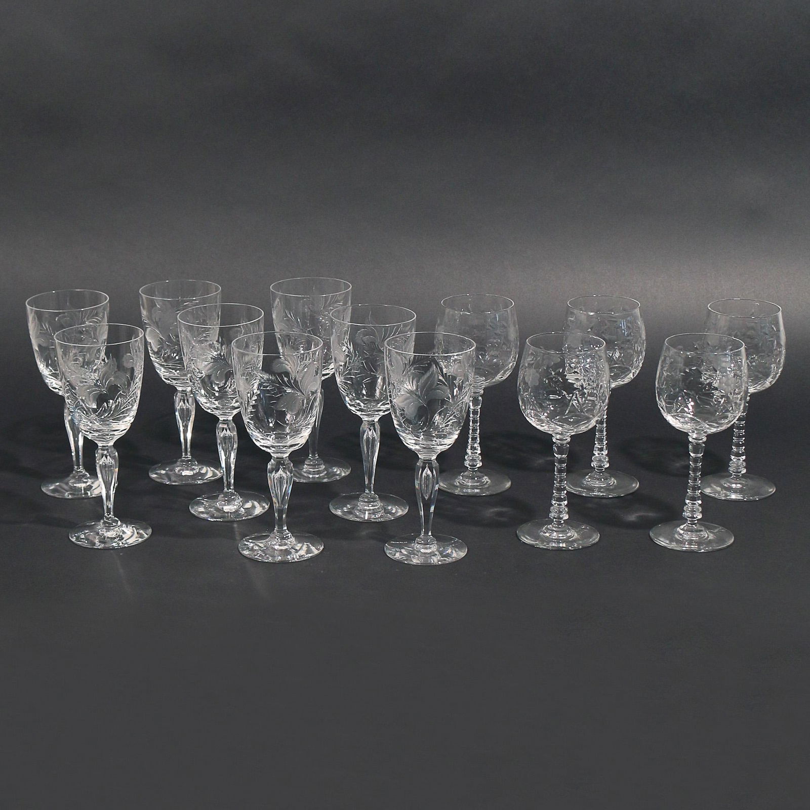 (13pc) CLEAR CUT WINE GLASSES & GOBLETS
