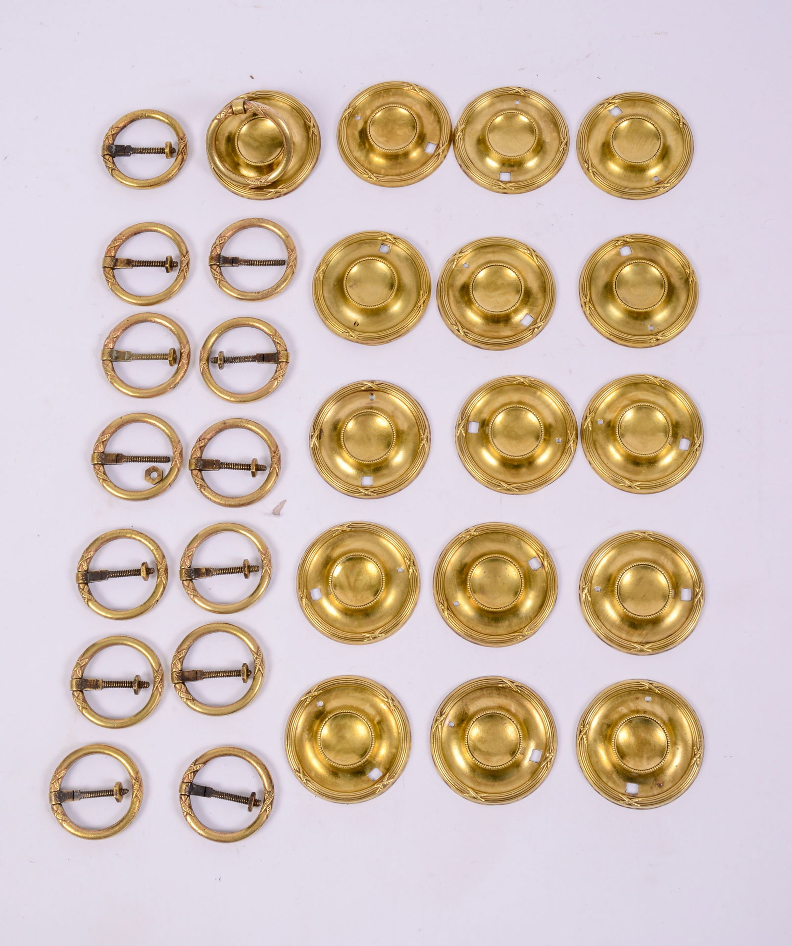 14 Brass Drawer Pulls with Backplates Sets