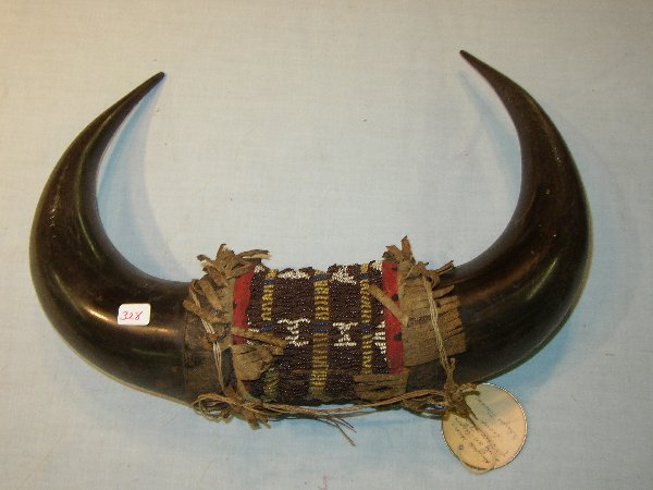 14" Buffalo Horns with Beaded Decoration
