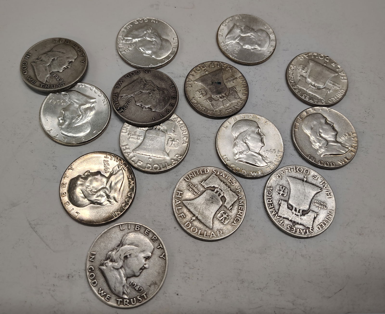 Lot of (10) 90% Silver Washington Quarters, Unsearched5 days LeftLot of Kennedy Silver Clad Half DollarsMar 10, 202614 ASST U.S. SILVER HALF DOLLARS INCL. WALKING LIBERTY+5 days LeftUS 1961-1963 Franklin Half Dollars, 90% SilverUS 1958-1963 Franklin Half Dollars, 90% Silver20 Silver Franklin Half Dollars15 hrs Left20 Silver Franklin Half Dollars15 hrs Left20 Silver Franklin Half Dollars15 hrs Left60 Franklin Silver Half DollarsMar 07, 2026(15) Franklin Half Dollar US Coins (90% Silver)Feb 28, 2026Fifteen mixed silver Half DollarsGroup of 40 US Washington Silver QuartersFeb 28, 2026Group of 40 US Washington Silver QuartersFeb 28, 202690% SILVER ASSORTED U.S. HALF DOLLARS - (10)Mar 07, 2026$10 Face Value Of Mixed Date 90% Silver Franklin Half DollarsFeb 27, 2026FIve mixed Silver Franklin Half Dollars