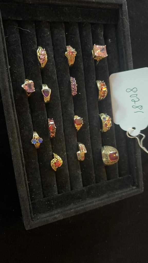 SoldEleven 14 Karat Gold RingsEleven 14 Karat Gold Rings stones include onyx, diamond peridot, amethyst, amber, etc. total weight 50.8 grams, sizes 6 3/4, 6 1/4, 6 1/2, 6 1/4, 6 3/4, 7, 6 3/4, 7, 6 1/2, 8 1/2, 8 1/4See Sold Price