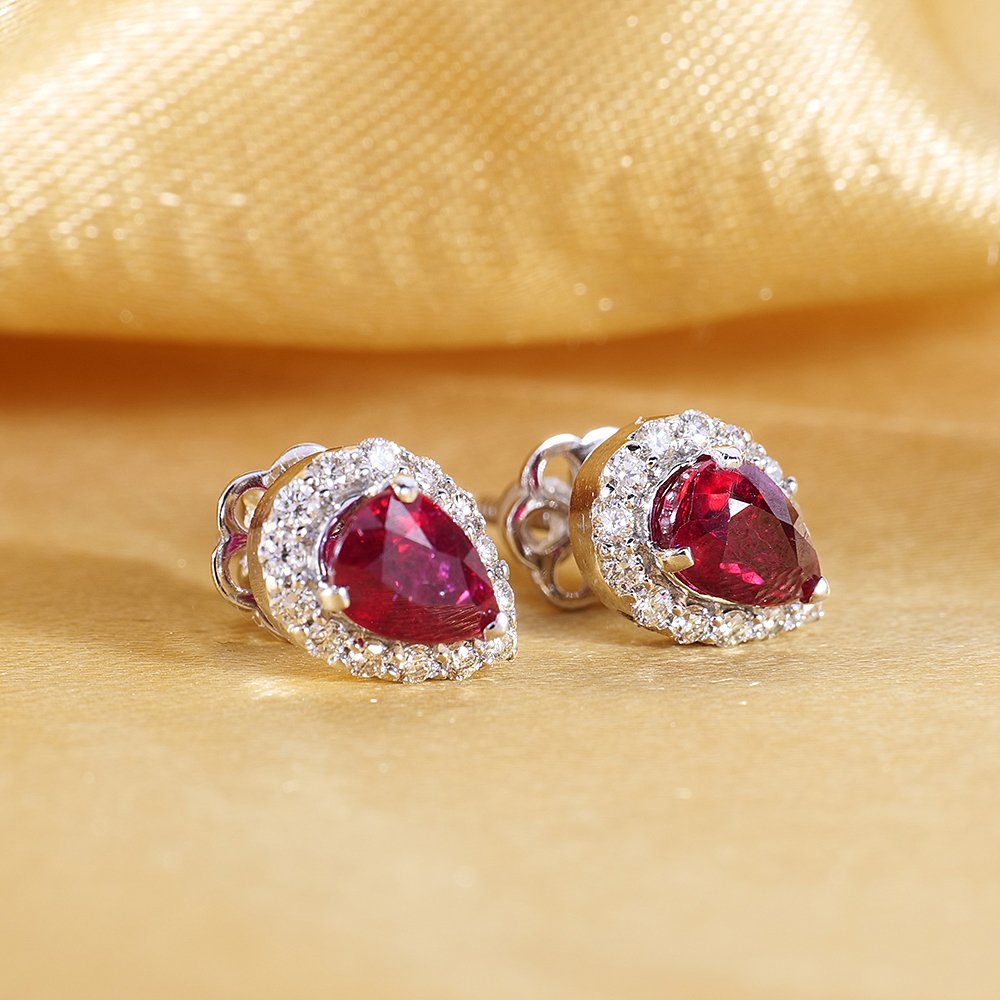 14k Gold 1.32 Ctw Vivid Red Natural Ruby & Diamond Earrings