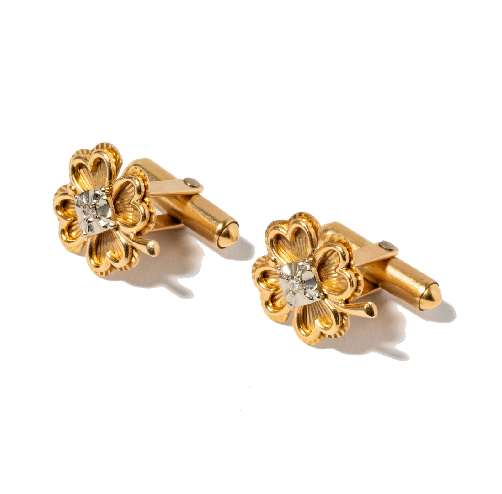 14 Karat Gold Diamond Clover Cufflinks