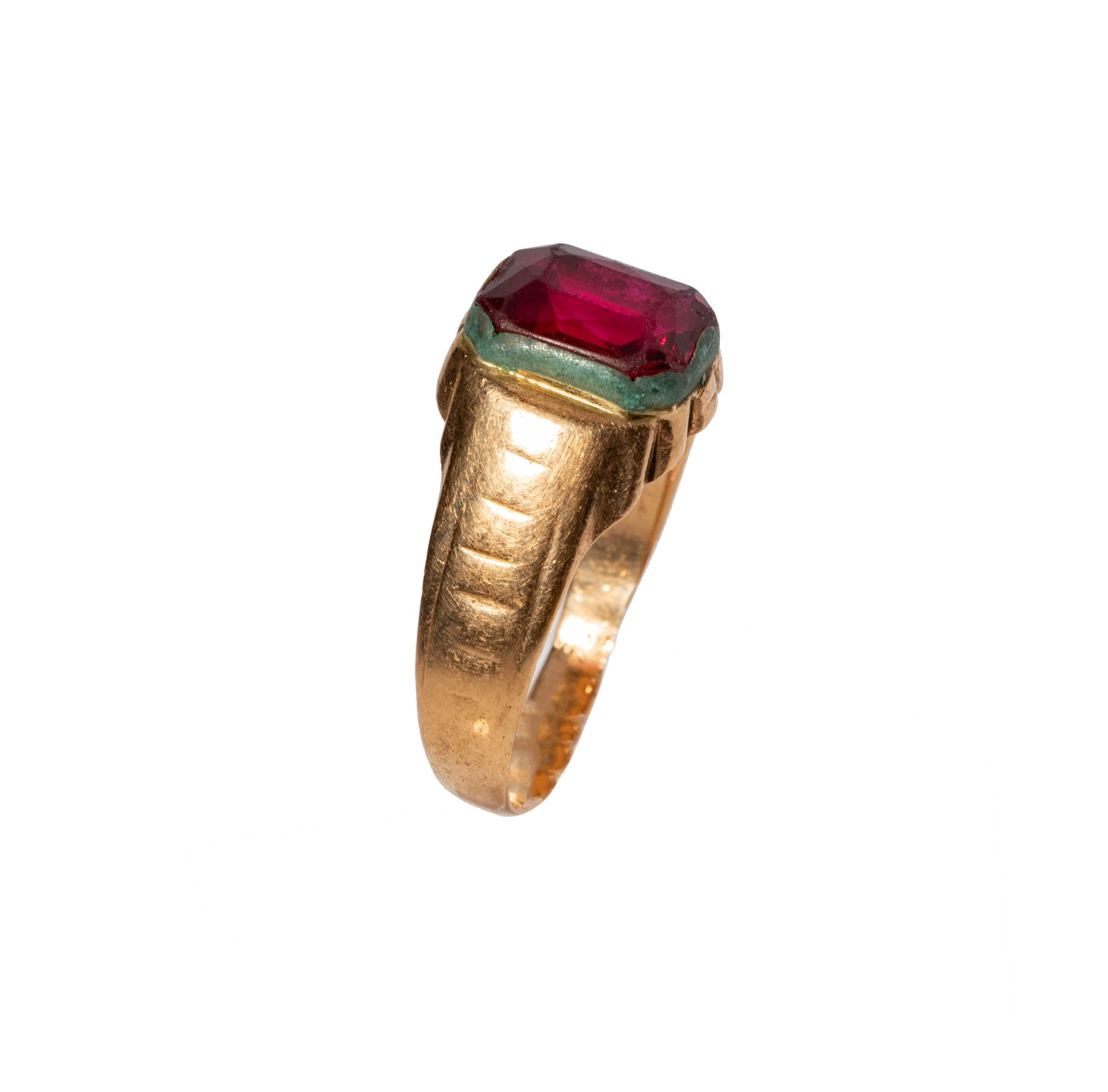 14 Karat Yellow Gold Synthetic Ruby Ring