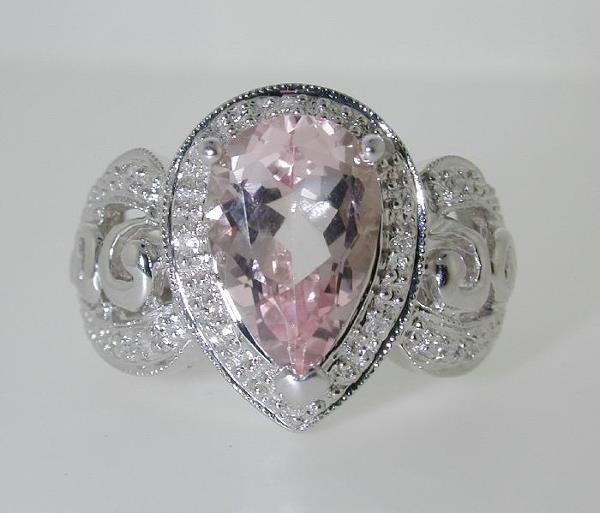 10kt White gold pink topaz and diamond ring