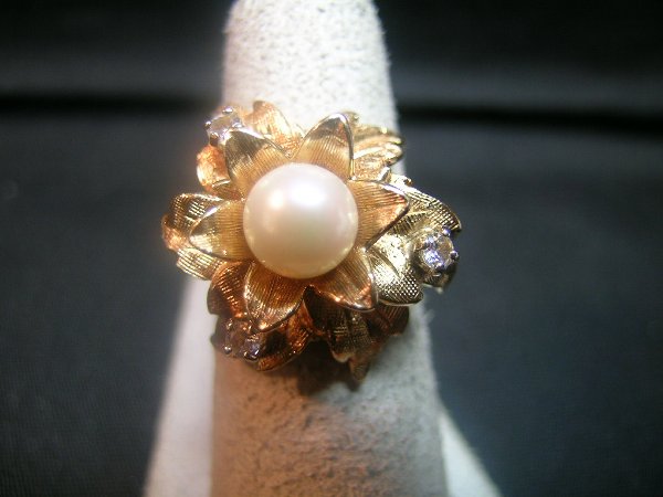 14 KT GOLD PEARL DIAMOND RING
