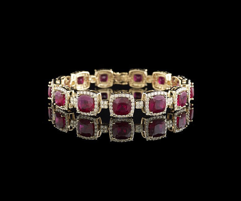 14K Gold 16.71ct Ruby 0.69ct Diamond Bracelet