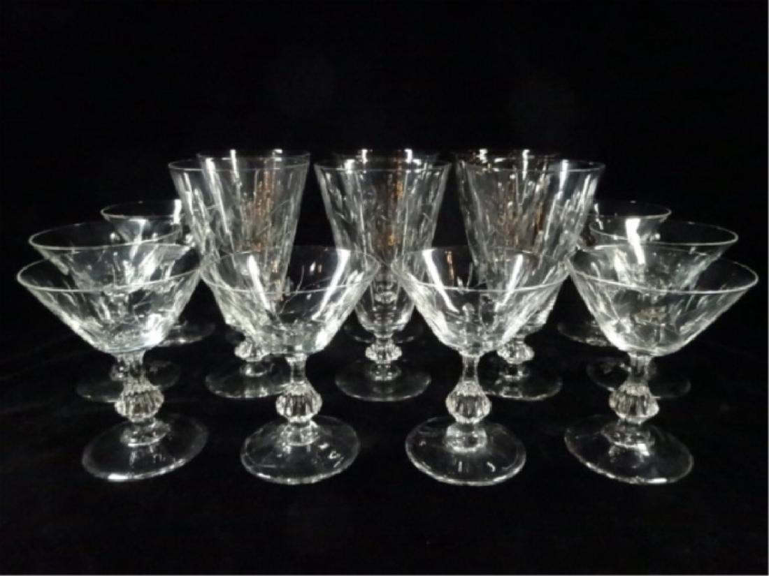 14 PC CRYSTAL GLASSES WITH LEAF DESIGN, INCLUDES 8