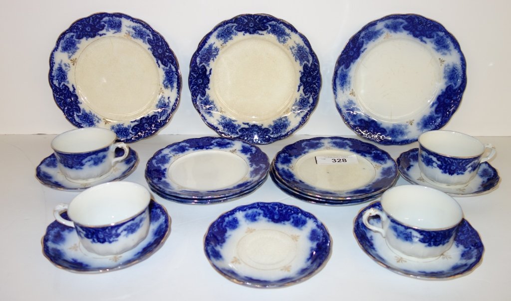 14 pc. Flow blue dishes/cups