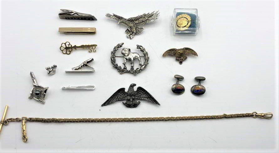 14 Pieces Assorted MAN LOT, Pins, Eagle, Tie, Cuff Link
