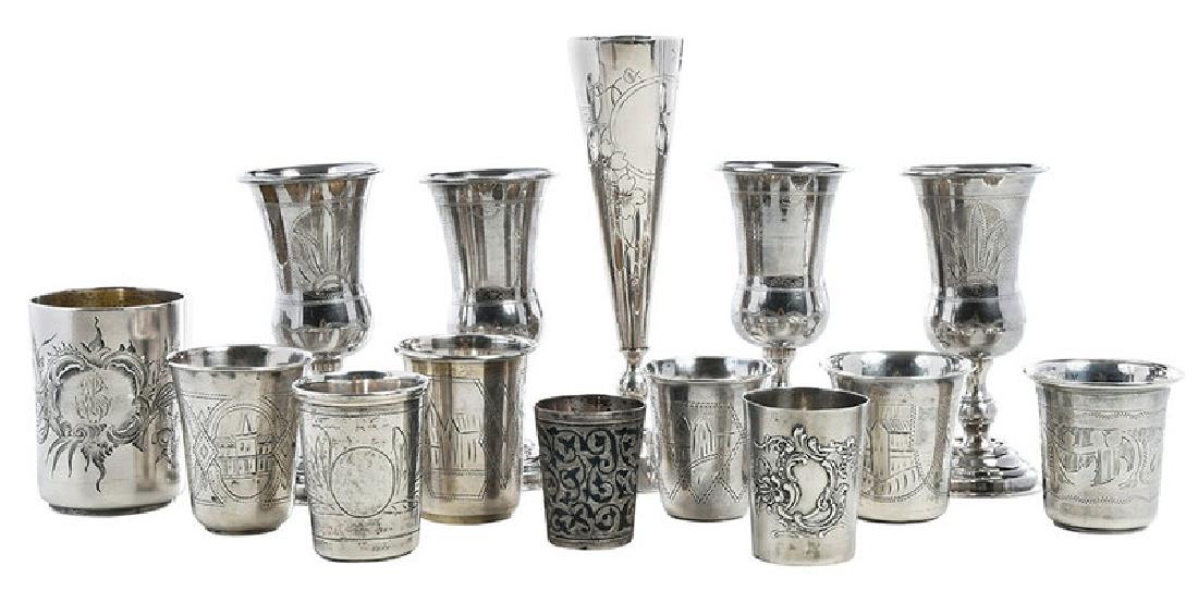 14 Russian Silver Kiddish or Vodka Cups
