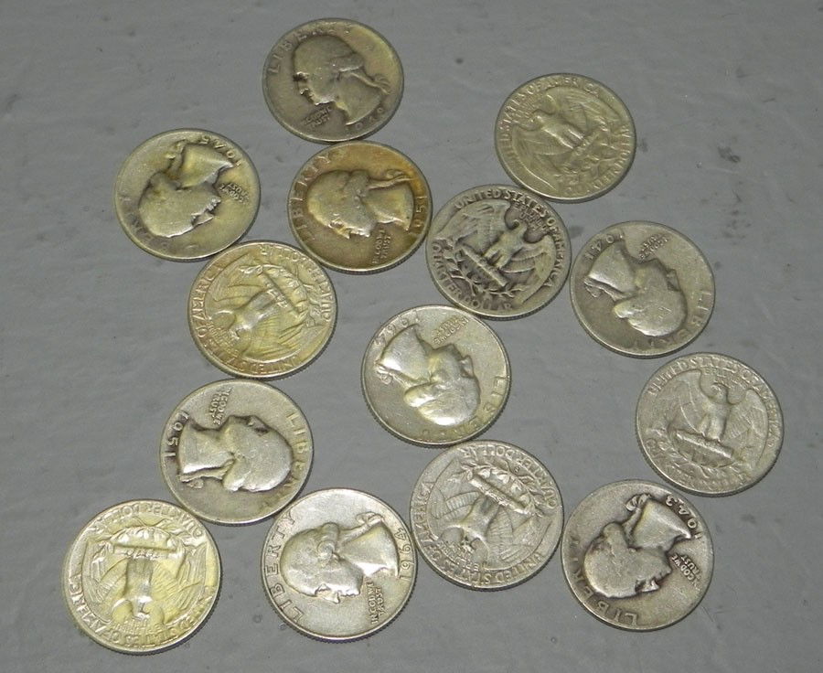 (14) Silver Washington quarters