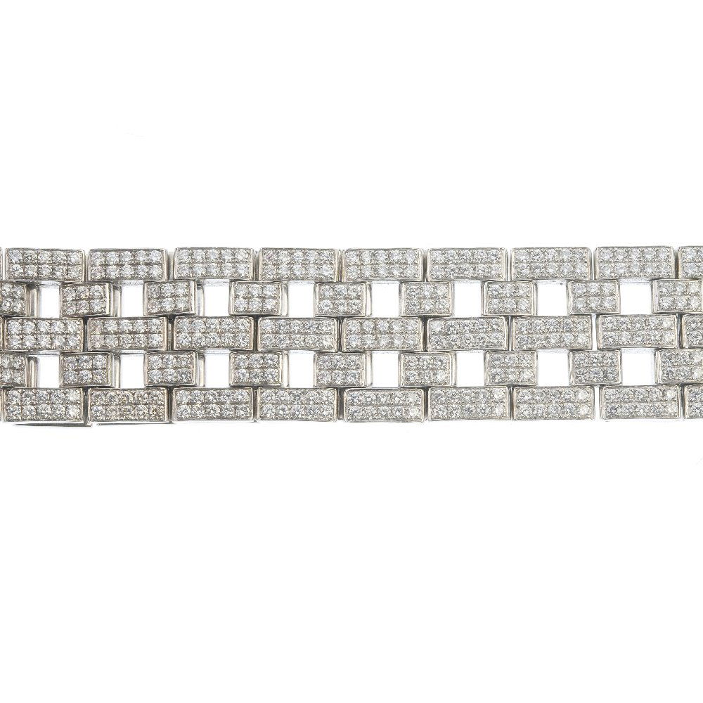 AN IMPORTANT DIAMOND BRACELET, 1940S in platinum, of geometric design, set with a central cluster ofAN IMPORTANT DIAMOND BRACELET, 1940S in platinum, of geometric design, set with a central cluster of baguette cut diamonds, the principal diamond of approximately 1.60 carats, between square shaped li