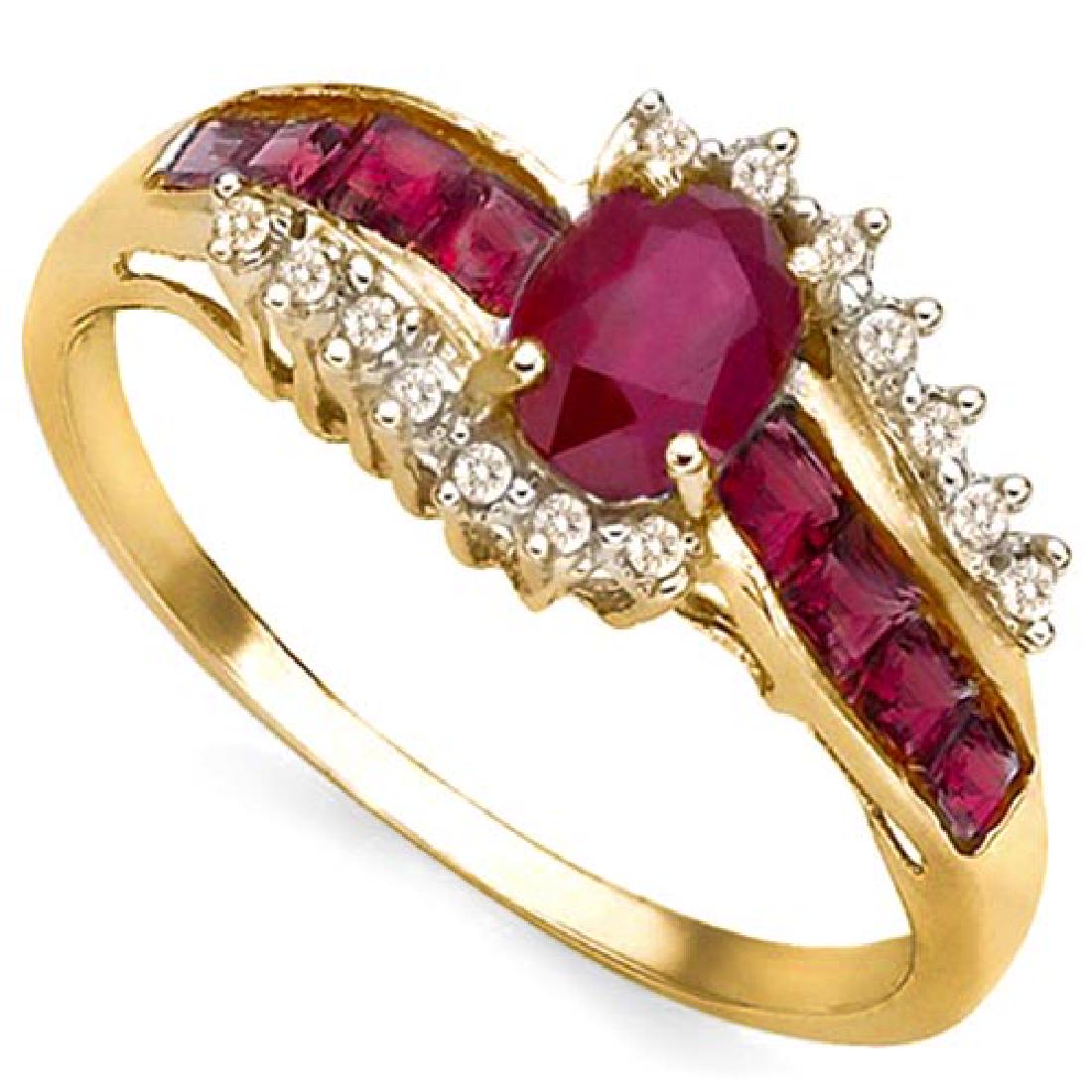 14k African Ruby & Ruby & White Diamond 1.03 Ctw Ring