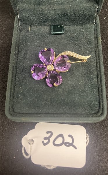 14k Amethyst and Diamond Pin