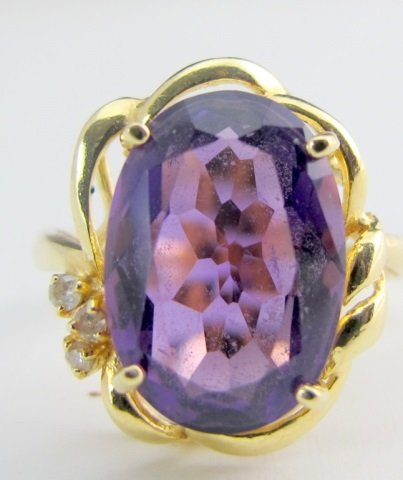14k Gold 13.7 Ct Natural Amethyst & Diamond Ring
