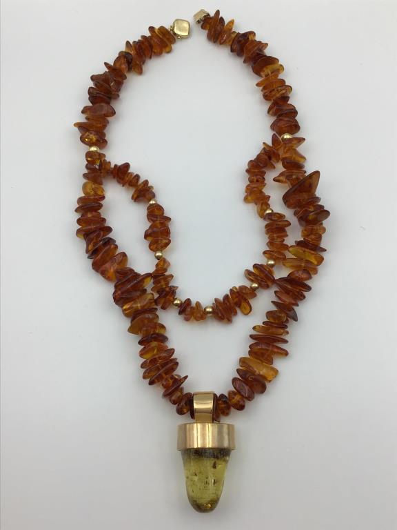 14K and amber chunk necklace
