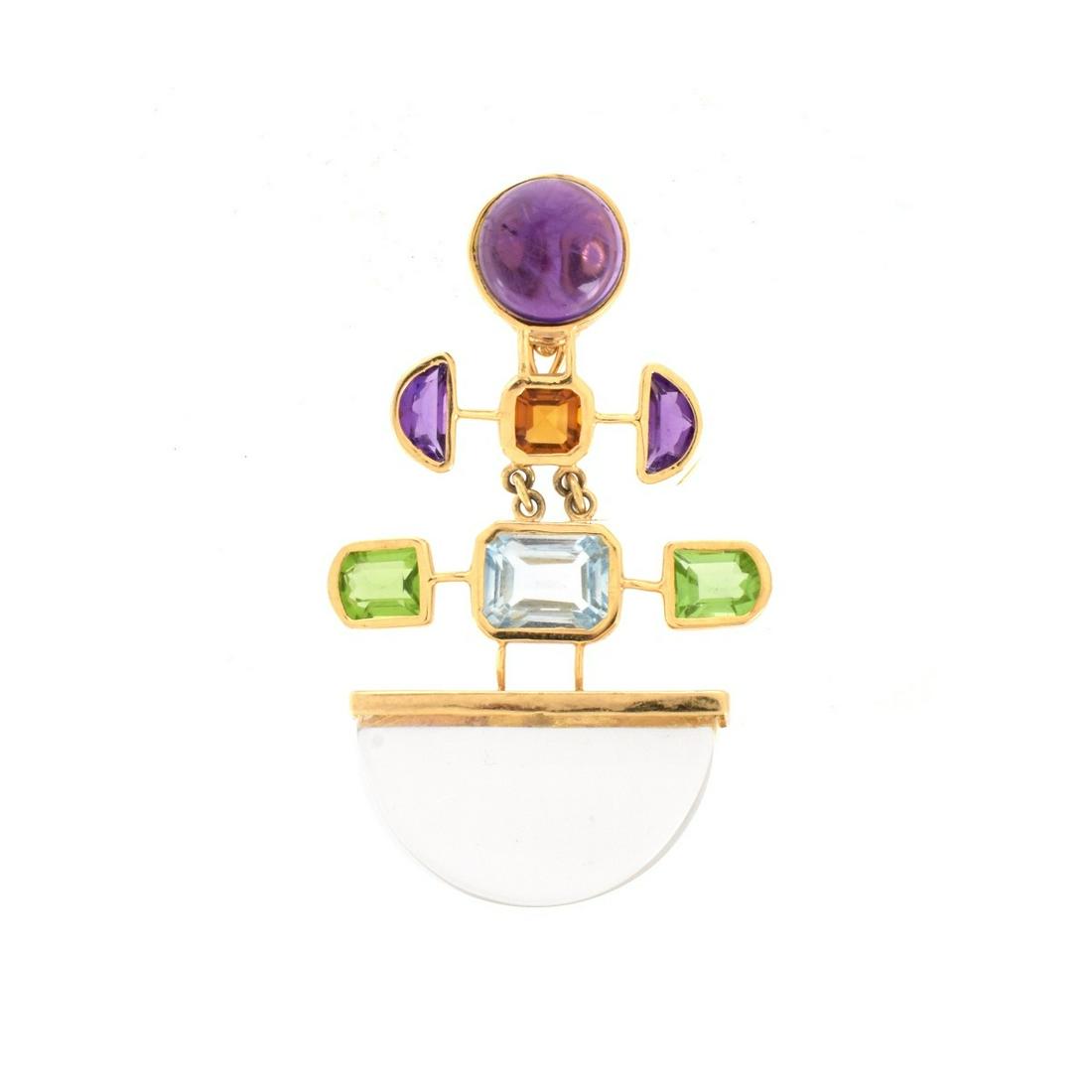 Sold14K Gold Gemstone PendantIncludes garnet, citrine, topaz, emerald and amethyst. Princess cut, channel set, 2.6g, measuresSee Sold Price
